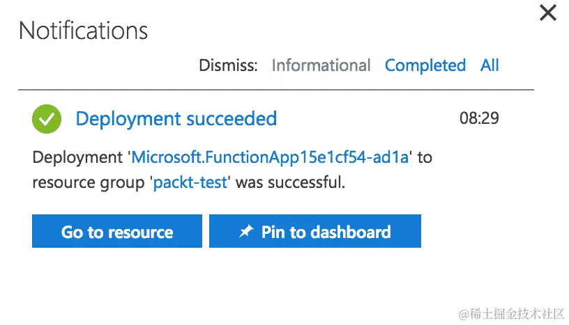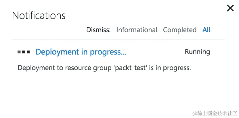 - 点击创建后,你将在“通知”菜单下看到部署正在进行中: