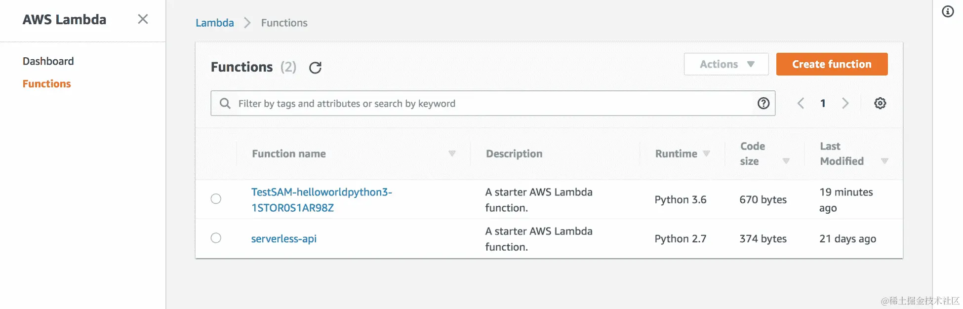 - 如果我们转到 Lambda 控制台,我们将看到通过 SAM 新创建的 Lambda 函数及其对应的名称: