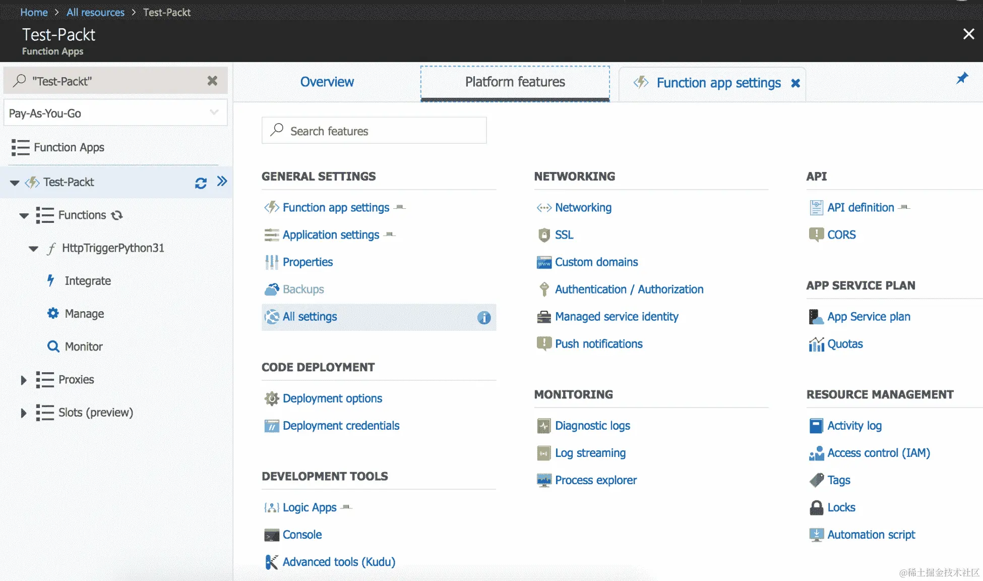 - 点击“转到资源”将带您到新创建的 Azure 函数。函数控制台将如下所示: