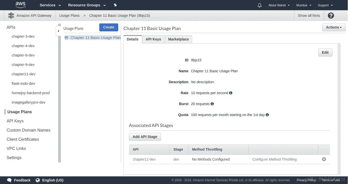 让我们创建现有 API 应用的另一个阶段。这个阶段将具有基本配置,没有身份验证和自定义域,因为我们只是想演示 X-Ray 的工作流程。以下是具有 X-Ray 支持的新阶段配置。