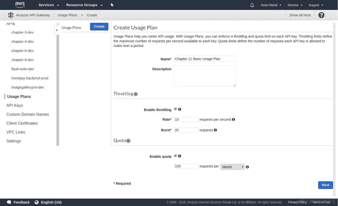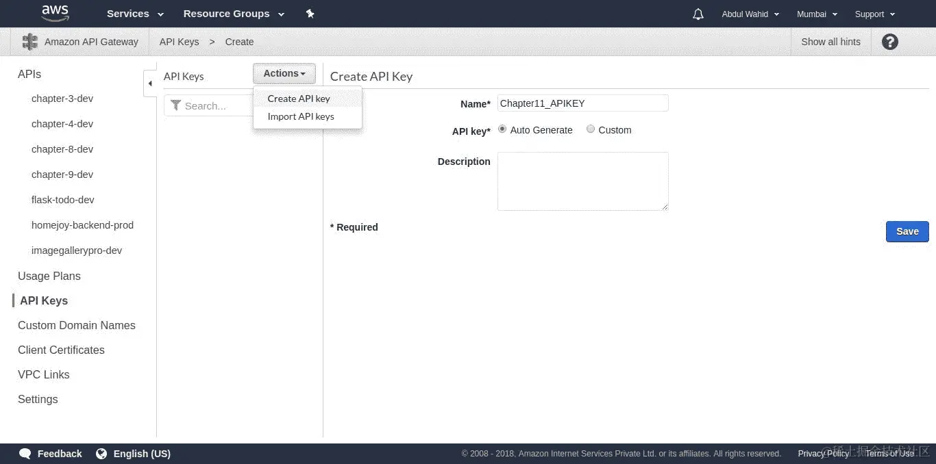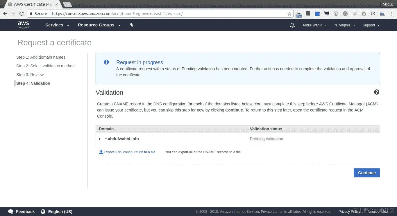 请注意,API Gateway 仅支持来自一个地区的 ACM 证书。因此,我们将使用US East地区。您可以在github.com/Miserlou/Zappa/pull/1142上阅读更多信息。