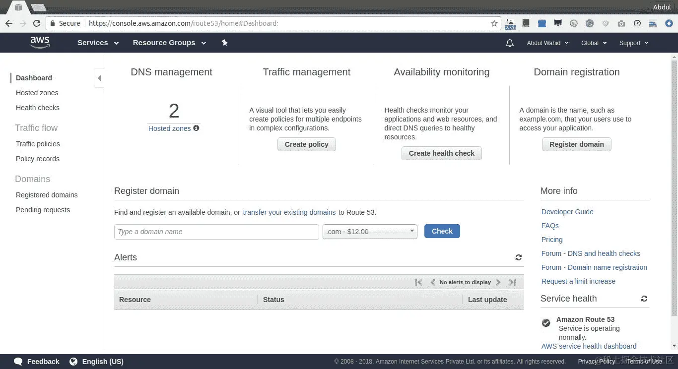 为我们的应用程序创建自定义域需要拥有一个域。域名可以从域名注册商那里购买。在我们的情况下,我从GoDaddy(in.godaddy.com/),这个域名系统(DNS)服务提供商那里购买了一个名为abdulwahid.info的域名。