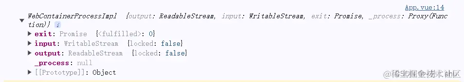 spawn 是执行命令的关键函数,必须要学会哈,返回值是WebContainerProcess,例如: