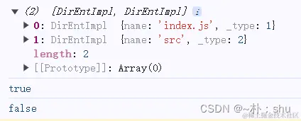 // 当传递 withFileTypes = true 的时候,会返回Dirent objects 的数组