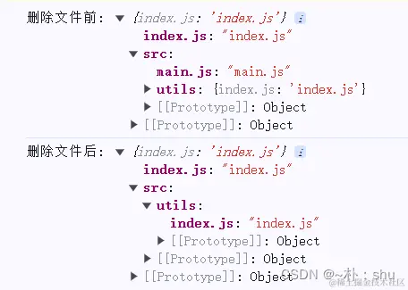 当我们在读取 / 的时候,发现并没有将main.js 文件一并输出,我们可以使用递归查询,后面到API在介绍。