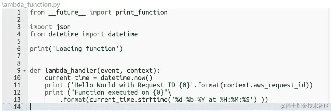 您需要编写一个函数,该函数将由 AWS Lambda 代表您执行。