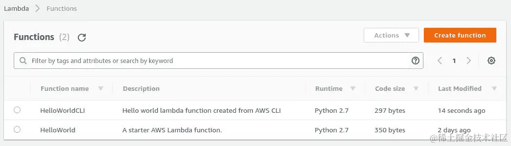 console.aws.amazon.com/lambda/home)。单击“创建函数”按钮。这将重定向您到创建函数页面,下一步将描述该页面。请查看以下屏幕截图:
