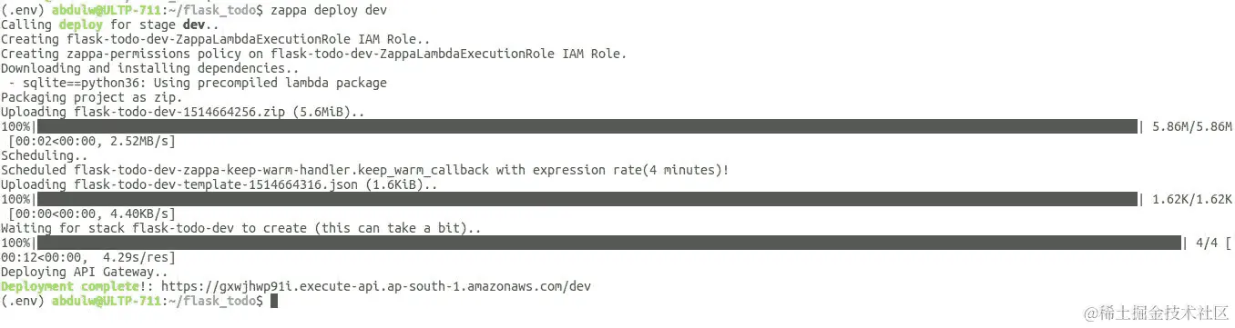 我们已经完成了 todo 应用程序的开发,现在是时候使用 Zappa 进行部署了。