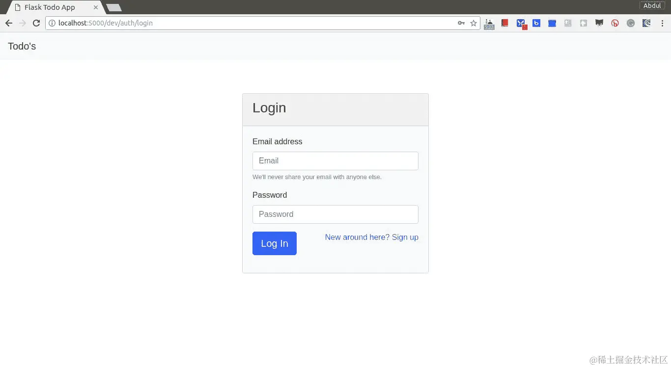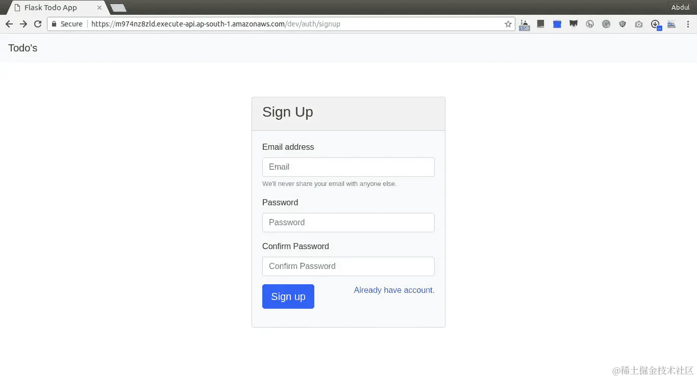 我们已经完成了部署,并且能够访问生成的 URL 上的 Todo 应用程序,如下截图所示。