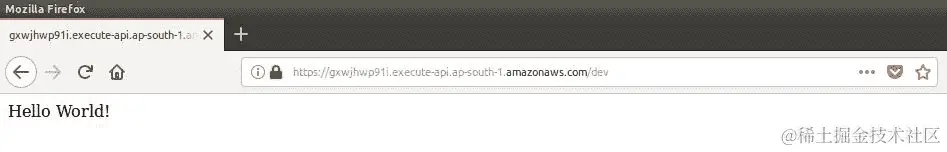 访问 URL 后的输出如下(m974nz8zld.execute-api.ap-south-1.amazonaws.com/dev/auth/signup):