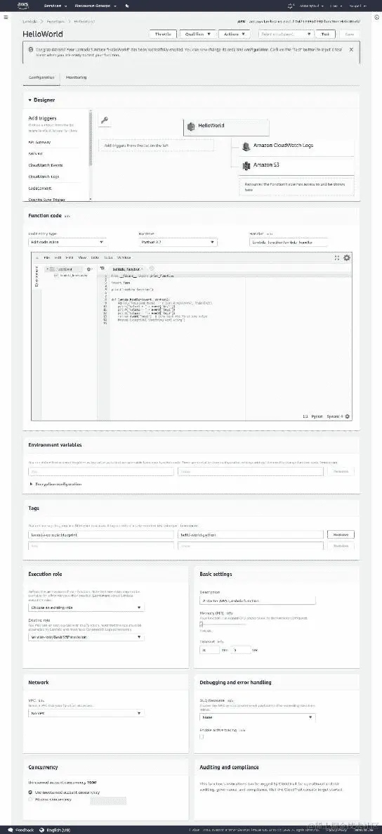 - 在这里,名称将是您的 Lambda 函数的唯一标识,而角色定义了您的 Lambda 函数的权限。