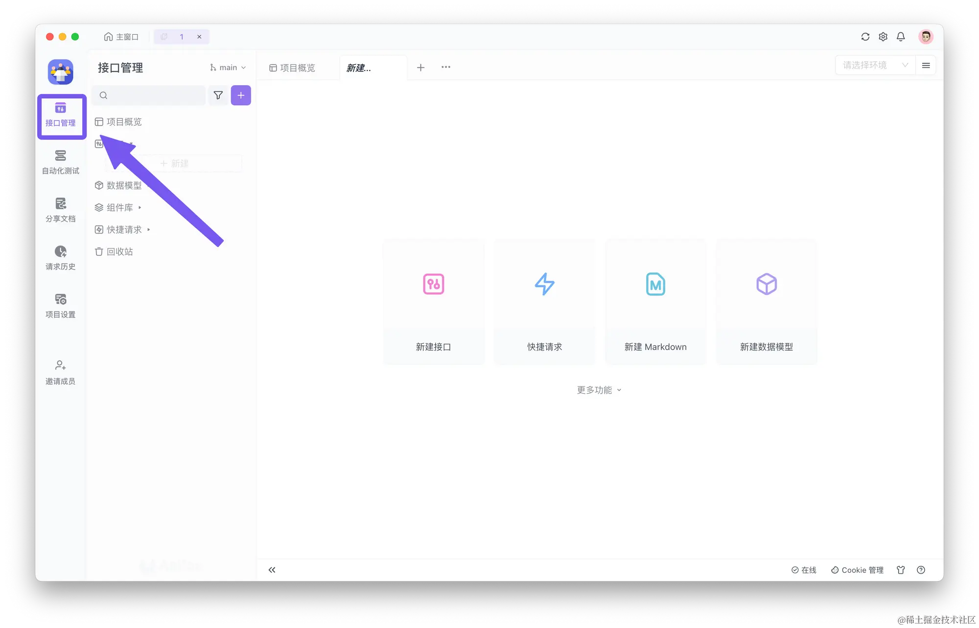首先配置测试环境,包括被测试系统和 Apifox。打开 Apifox 并切换到「自动化测试」标签。