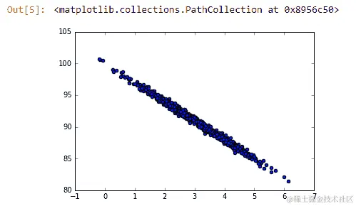 你可以通过肉眼观察到确实存在线性关系,这是因为我们在源数据中硬编码了一个真正的线性关系。