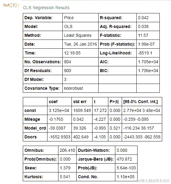 现在我们得到的线的 R 平方值是 0.99,几乎是 1.0。这意味着我们有一个非常好的拟合,这并不太令人惊讶,因为我们确保这些数据之间存在真正的线性关系。即使在该线周围存在一些方差,我们的线也捕捉到了这些方差。我们在线的两侧大致有相同数量的方差,这是一件好事。这告诉我们我们确实有线性关系,我们的模型很适合我们的数据。