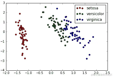 这是我们将 4D 鸢尾花数据投影到 2 个维度。非常有趣!你可以看到它们仍然相当好地聚集在一起。你知道,所有的维吉尼亚人坐在一起,所有的变色鸢尾坐在中间,而山鸢尾则远在左侧。真的很难想象这些实际值代表什么。但是,重要的是,我们将 4D 数据投影到 2D,并且以这样的方式保留了方差。我们仍然可以清楚地看到这 3 个物种之间的明显区分。在其中有一些交织,不是完美的,你知道。但总的来说,它非常有效。