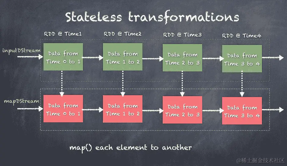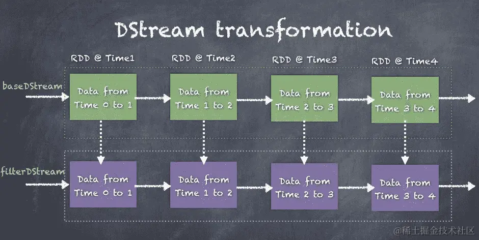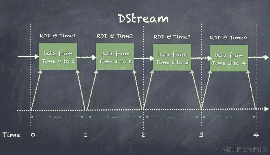 随着 DStream 随时间的变化,将处理更多的数据以生成结果。因此,无界输入表用于生成结果表。输出或结果表可以写入称为输出的外部接收器。