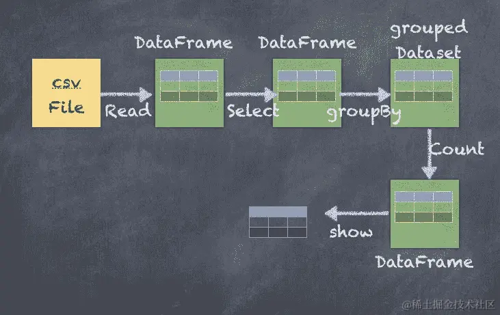 请注意,Spark SQL 只是转换为 DataFrame API 以进行执行,SQL 只是用于方便使用的 DSL。
