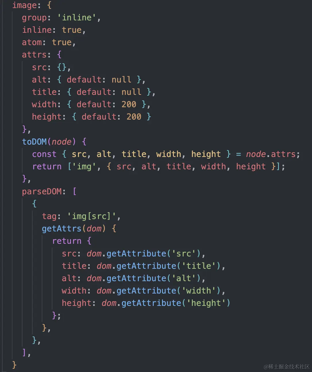 node:node分为block和inline两个类型,和html中的概念类似,block即是一行占一个,而inline是一行内多个。schema使用node来描述在富文本中常见的元素,如标题,段落,代码块,图片等。