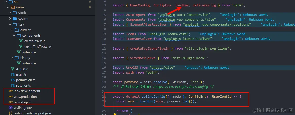 然后通过脚手架 这里以 vite 为例 在 vite.config 文件中 通过vite 提供的方法 loadEnv 来加载.env.xxxx 环境变量文件 拿到env 变量