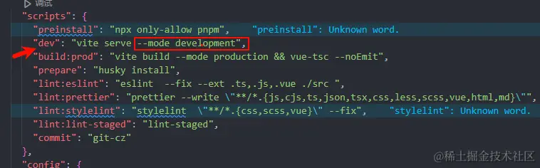 比如下图 我们在 运行 npm run dev 命名的时候 就会调用 development 就会执行 .env.development 文件