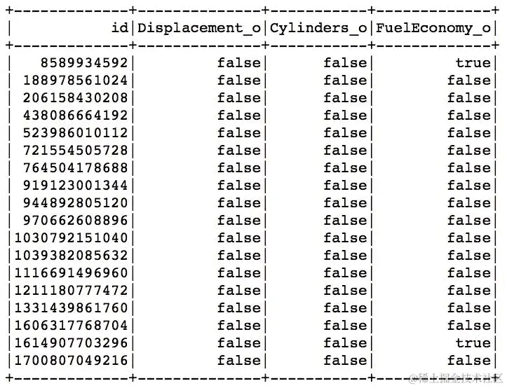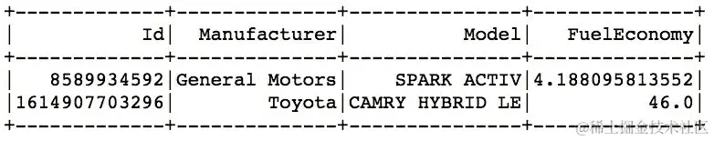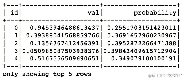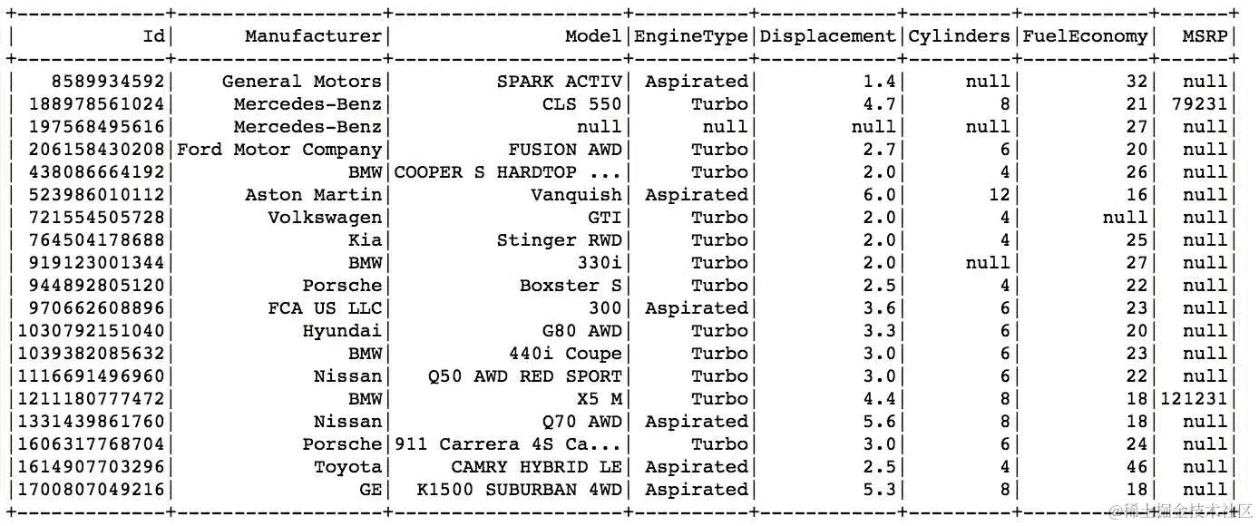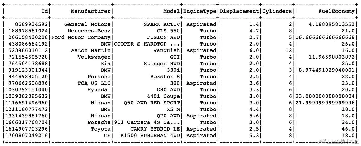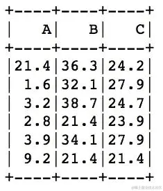 然而,如果我们要查看sample_data_df DataFrame 中的数据,使用.show(...)方法,我们会看到以下内容: