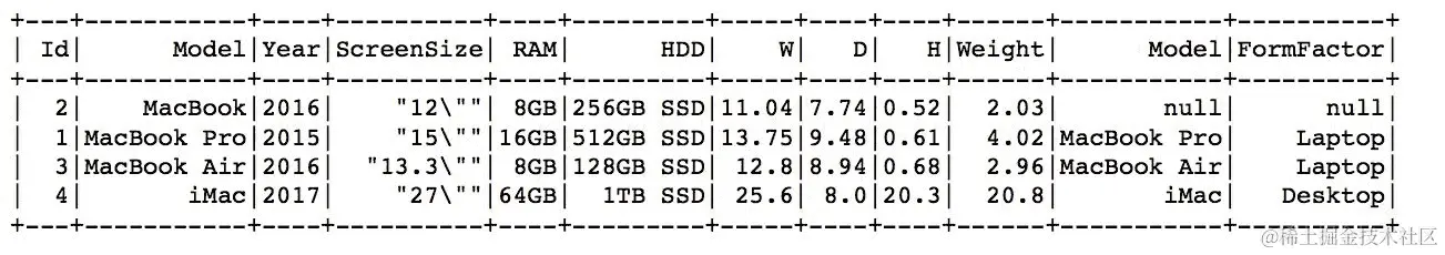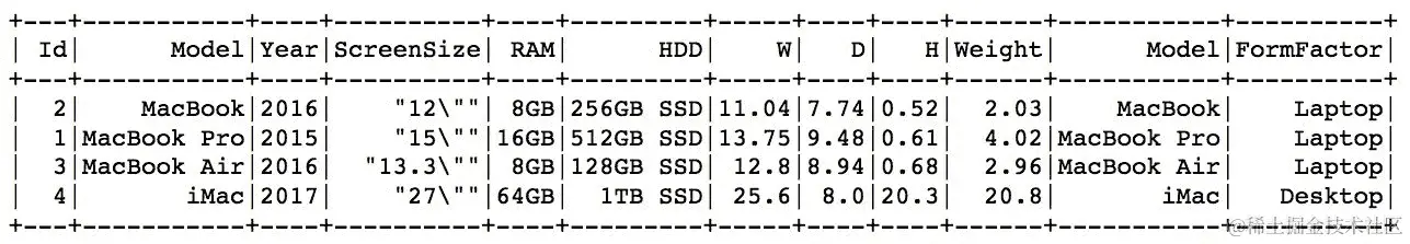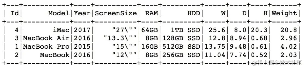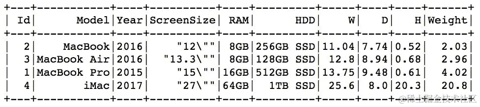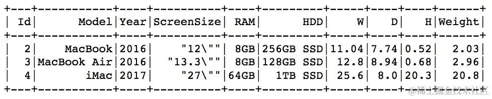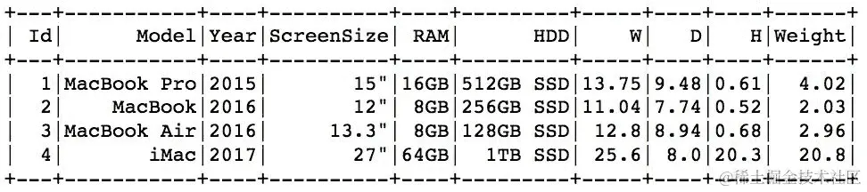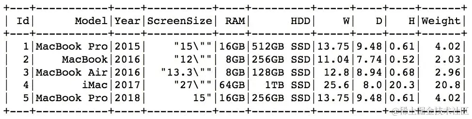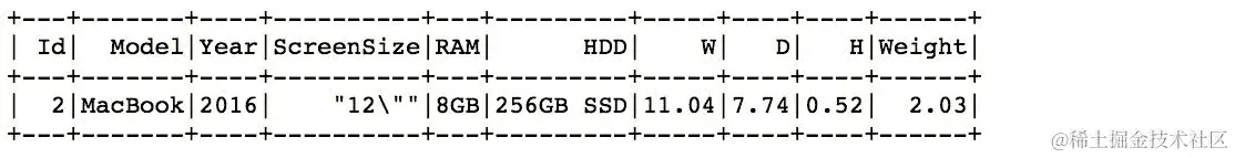 , (2, 'MacBook', 2016, '12"', '8GB', '256GB SSD'