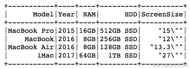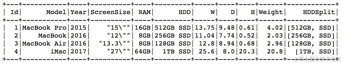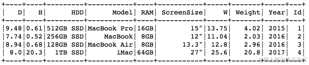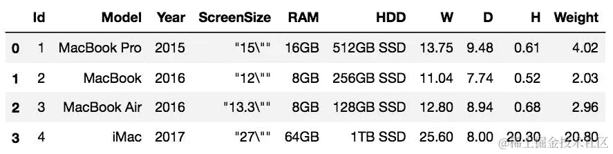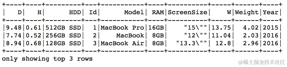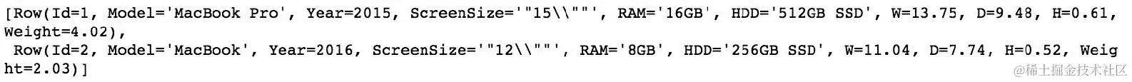 我们的示例数据集只包含了一些相对较新的苹果电脑的记录。然而,与所有 RDD 一样,很难弄清楚元组的每个元素代表什么,因为 RDD 是无模式的结构。