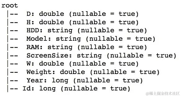 传递的唯一附加参数确保该方法将第一行视为列名(header参数),并且它将尝试根据内容为每列分配正确的数据类型(inferSchema参数默认分配字符串)。