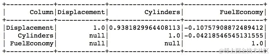 correlations = spark.createDataFrame(corr, ['Column'] + features)