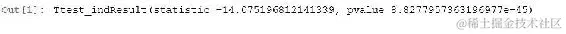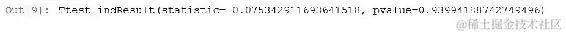 我们可以在以下输出中看到,t 统计量为0,p 值为1.0,因为实际上这些集合之间根本没有任何差异。