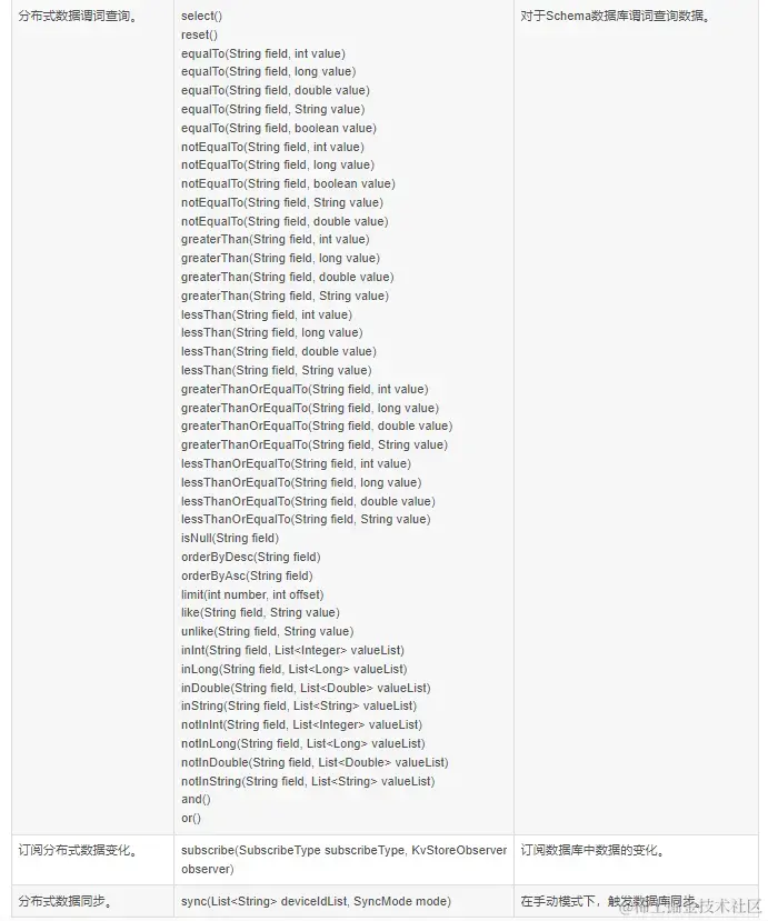 **表1 **分布式数据服务关键API功能介绍