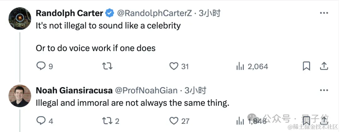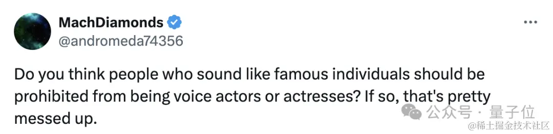 当然,这件事到现在还没有被实锤,OpenAI 也做出了辩解,网友们认为,如果声音和名人真的只是相似的话,那就没有被禁止的理由了。