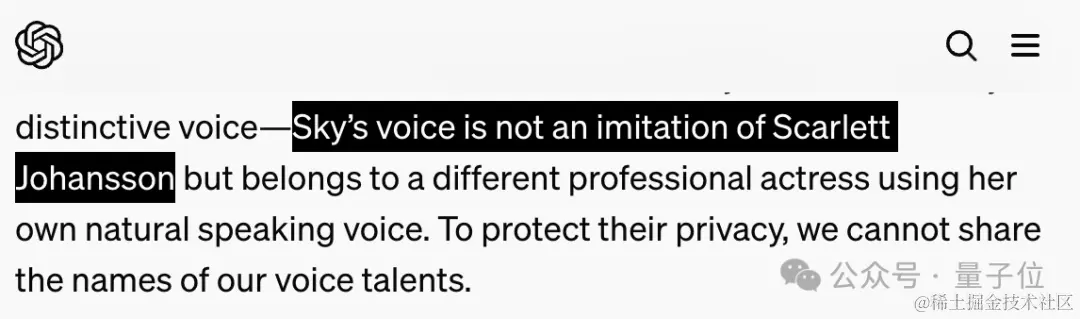 我们收到了关于 ChatGPT 中声音,特别是 Sky 的疑问,我们正在采取措施暂停 Sky 的使用,直到问题被厘清。