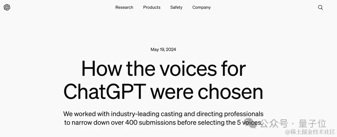 同时,OpenAI 还附上了一则官网中的声明,介绍了 ChatGPT 中声音的选择流程。