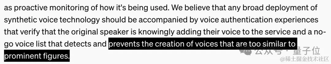 不过今年 3 月,OpenAI 在发布声音合成引擎 Voice Engine 的时候,就有提到过采取了措施避免克隆公共人物的声音。