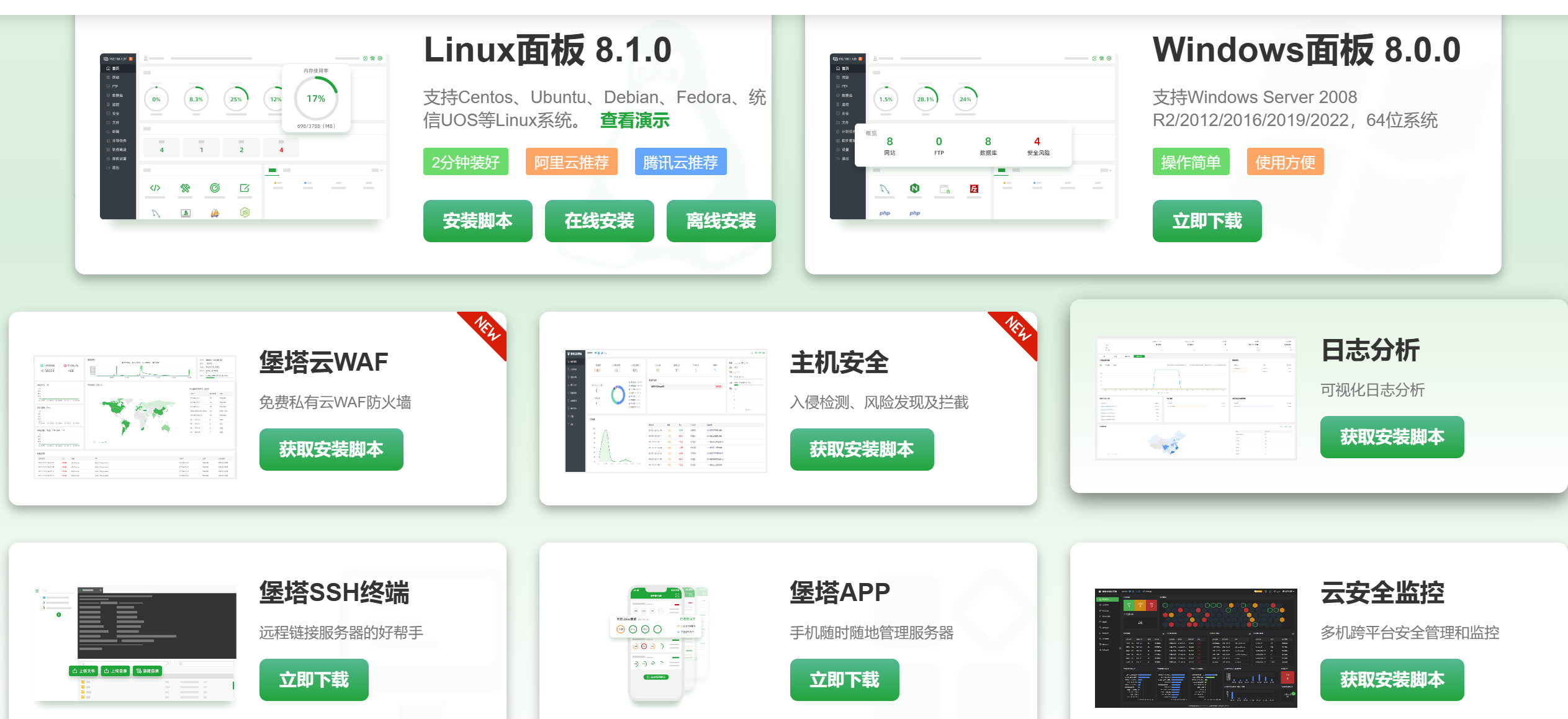 宝塔只是一个Linux 运维面板,方便管理服务器、方便安装软件。