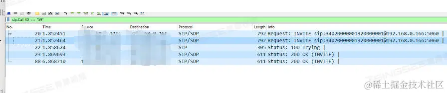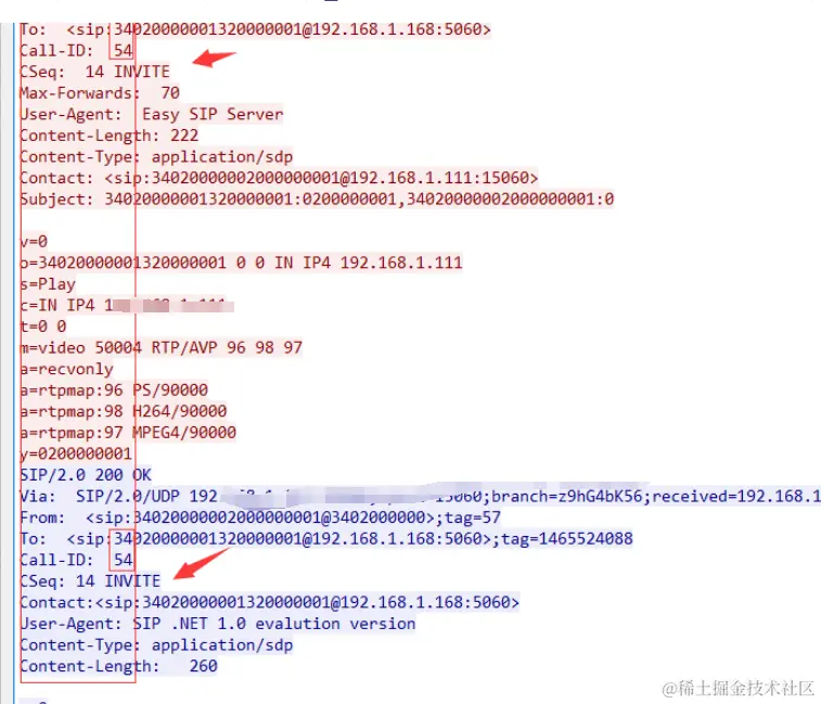 对其报文展开发现,设备回复和请求invite信息的call-id有空格,对此平台未回复设备200 ok请求的ack信息,因此视频无法播放。