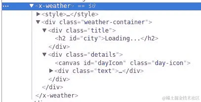 就是这样!你需要构建一个 DOM 元素(比如<input>、<p>和<div>元素),它将显示一个天气小部件。x-weather是一个新的 HTML5 自定义元素,我们将在本章中构建它。它将克服我们在之前方法中可能遇到的所有问题。