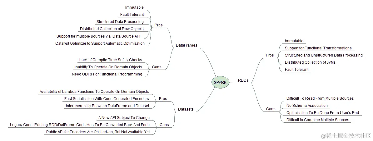 Spark 的三大工作马是 RDD、数据框架和数据集 API,用于高效处理规模化数据。虽然每个都有其自身的优点,但新的范式转变更青睐数据集作为统一的数据 API,以满足单一接口中的所有数据整理需求。