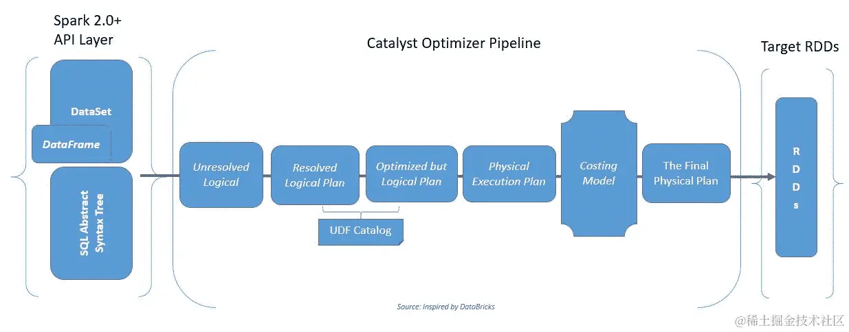 Catalyst 优化器友好:使用 Catalyst,API 手势被转换为使用目录(用户定义的函数)的逻辑查询计划,并最终将逻辑计划转换为物理计划,这通常比原始方案提出的更有效(即使您尝试在