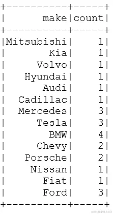 cars.groupBy("make").count().show()