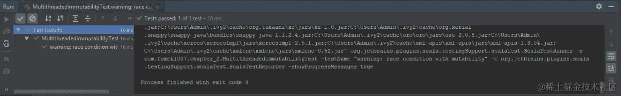 但这里存在竞争条件。在检查if(!listMutable.contains("A"))之后,run()线程可能会将"A"元素添加到列表中。但我们在if中,所以我们将通过listMutable += "A"添加另一个"A"。由于状态的可变性以及它通过另一个线程进行了修改,我们可能会有"A"或"A","A"。