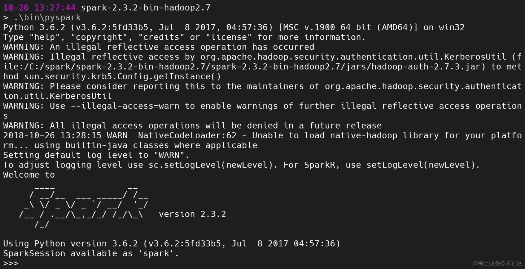 Python 类似于 PySpark 集成,我们将很快介绍。现在,我们将从 PySpark 包中导入一些库,以帮助我们使用 Spark。我们理解 Spark 的最佳方式是查看示例,如下面的屏幕截图所示: