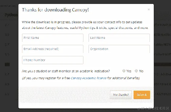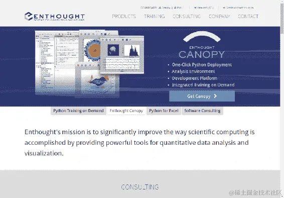 - 要安装 Canopy,只需转到 www.enthought.com,然后点击下载:Canopy: