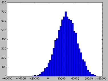 incomes = np.random.normal(27000, 15000, 10000)
