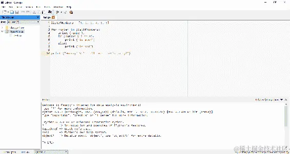 我们只需要设置最后一件事,所以请点击 Canopy 欢迎屏幕上的编辑器按钮。然后您会看到编辑器屏幕出现,如果您在底部的窗口中点击,我希望您只是输入: