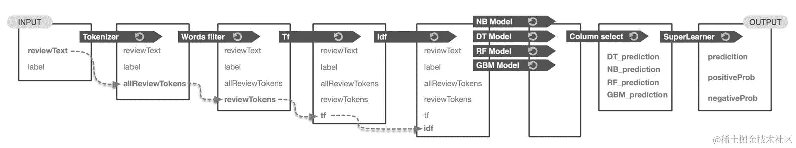最后,我们将为此过程创建一个 Spark 机器学习管道,该管道执行以下操作:
