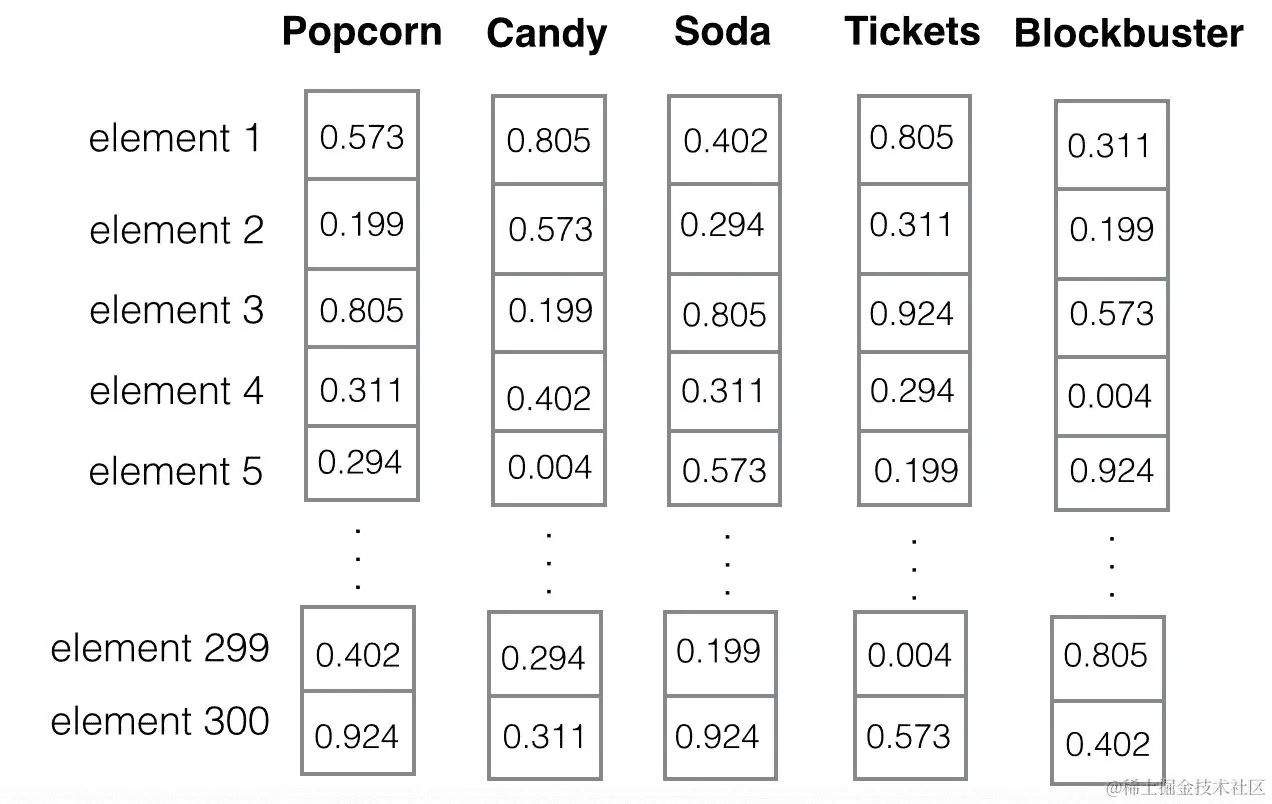 首先,注意到这个数据集的排列方式,通常称为文档-术语矩阵(每个文档[行]由一定的一组单词[术语]组成,构成了这个二维矩阵)。我们也可以以不同的方式排列它,并转置行和列,创建-你猜对了-一个术语-文档矩阵,其中列现在显示具有该特定术语的文档,单元格内的数字是计数。还要意识到单词的顺序是按字母顺序排列的,这意味着我们失去了任何单词顺序的意义。这意味着“失败”一词与“侏罗纪”一词的相似度是相等的,虽然我们知道这不是真的,但这突显了词袋模型方法的一个局限性:单词顺序丢失了,有时,不同的文档可以有相同的表示,但意思完全不同。