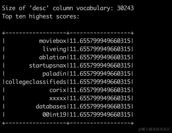代码首先调用共享库函数basicDataCleanup,然后使用另一个共享库函数descWordEncoderUdf转换desc列:这两种情况都是基于 Spark DataSet SQL 接口实现的。其余步骤将应用定义的转换器。同样,我们可以探索转换后的流的结构,并验证它是否包含我们转换引入的字段: