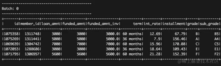 Spark 为流提供了所谓的“输出接收器”。接收器定义了流如何以及在哪里写入;例如,作为 parquet 文件或作为内存表。但是,对于我们的应用程序,我们将简单地在控制台中显示流输出: